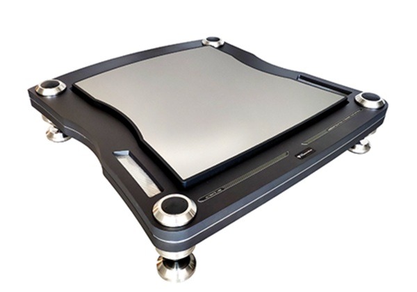 Felépítés: 60 mm vastag rozsdamentes acél lábazat, Delrin állítható tüskékkel