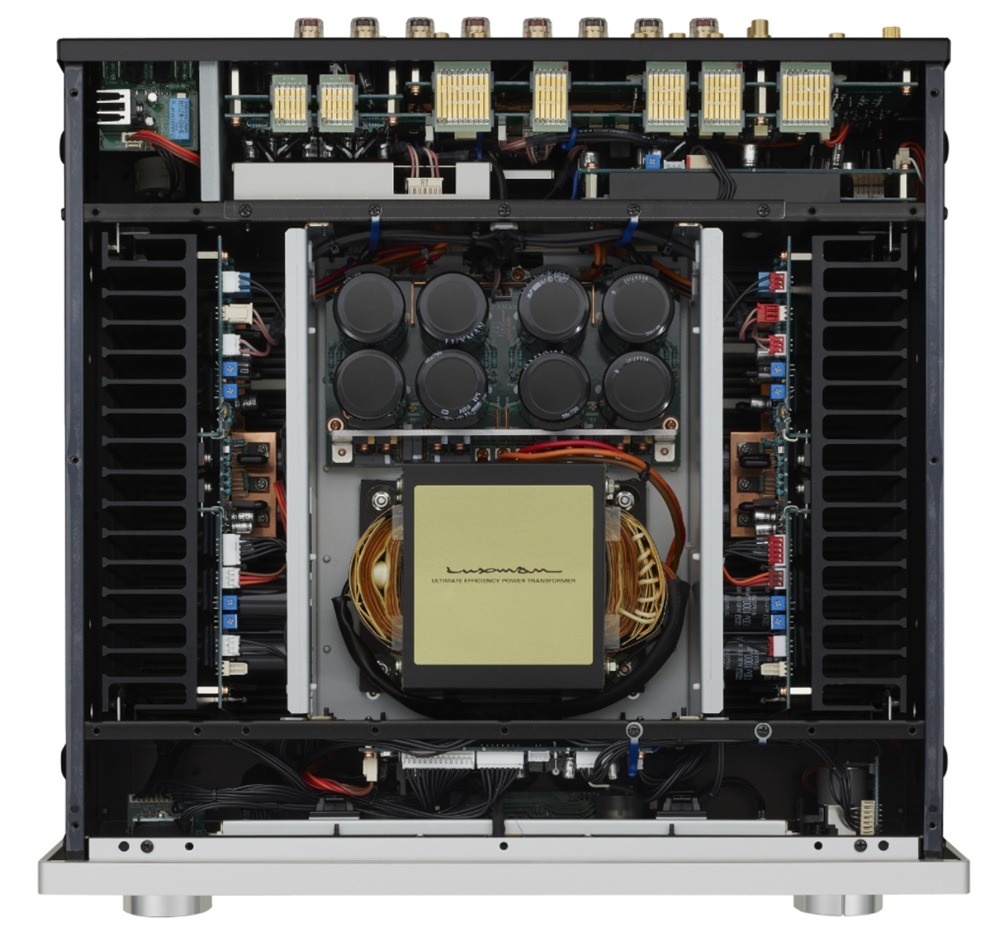 Minden erősítő hangminőségét alapvetően meghatározza a stabil tápfeszültség ellátás. A Luxman hagyományosan EI vasmagos túlméretezett transzformátort, és nyolc darab egyedi igényeik szerint gyártatott szűrő kondenzátort alkalmaz. A 80.000uF kapacitás bank megrendíthetetlen tápellátást garantál.