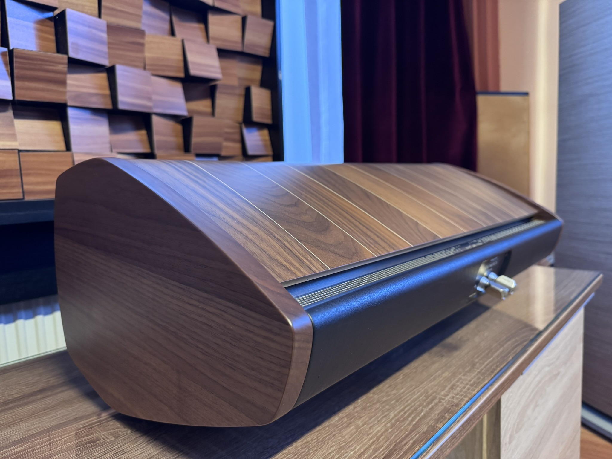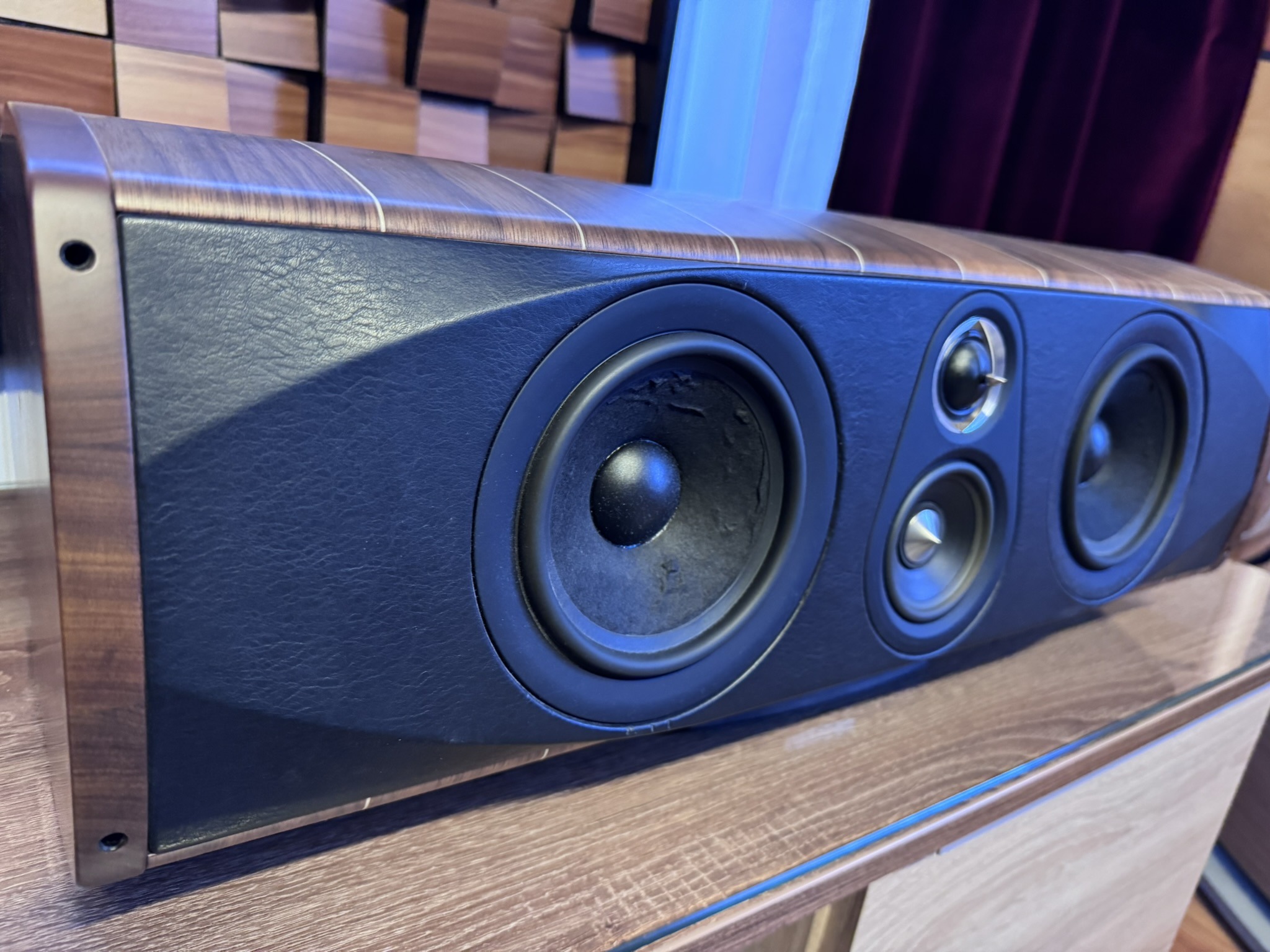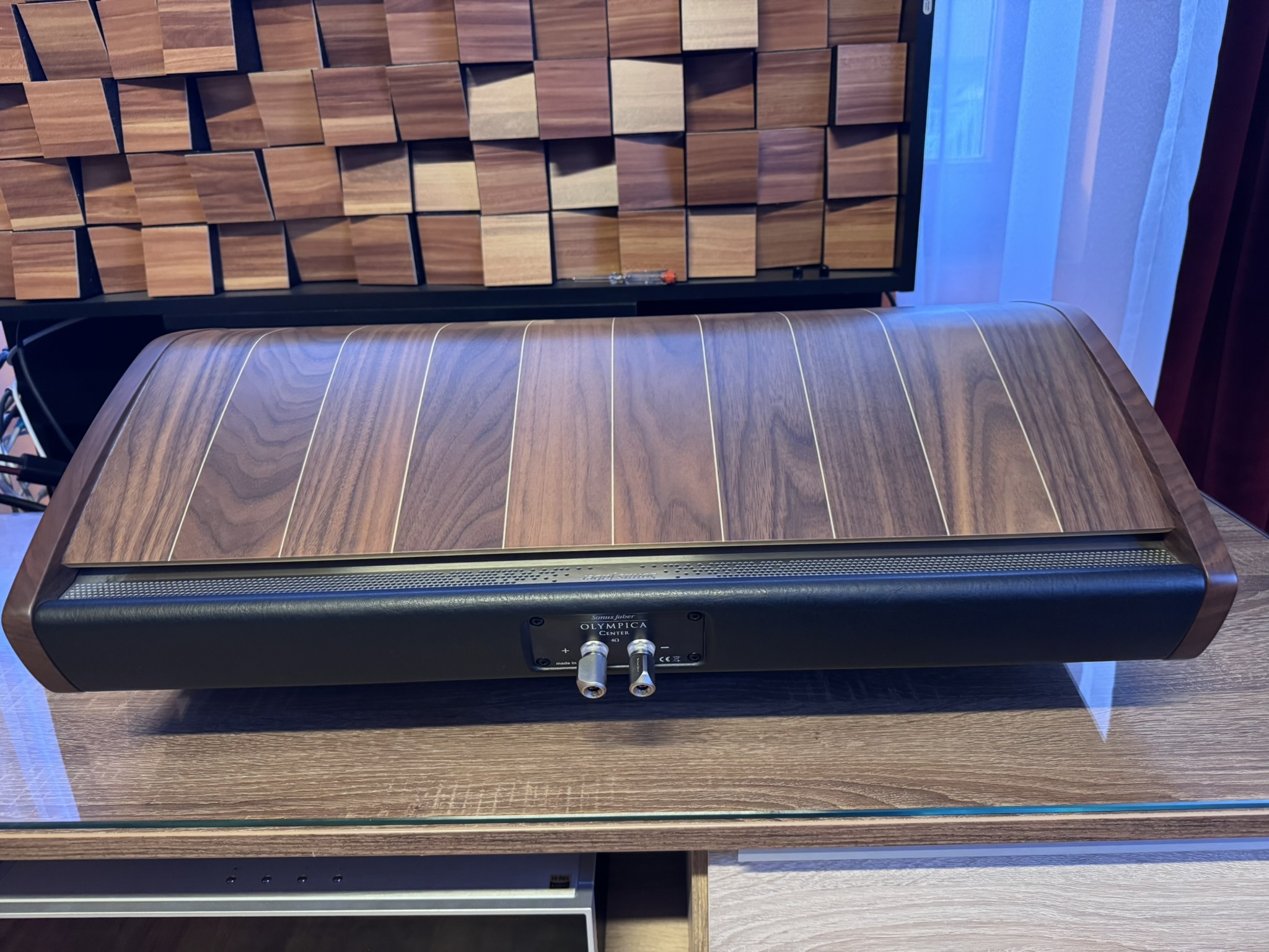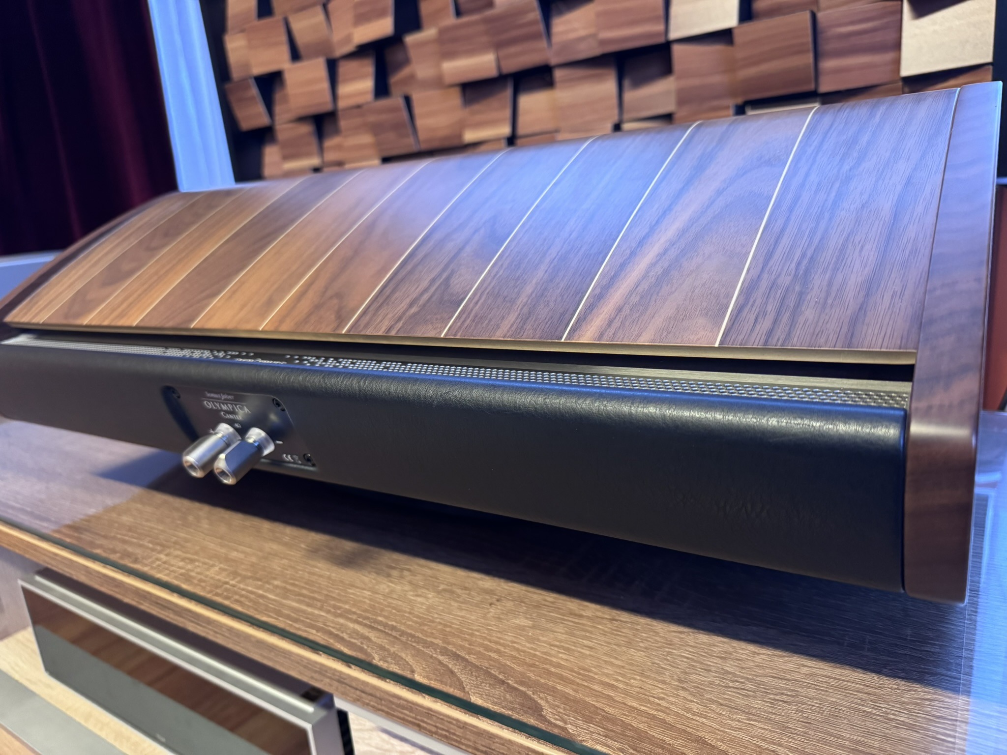 Cabinet is characterized by the use of natural wengé wood and solid wengé with magnificent joints in clear maple wood in the wengé finish and more traditional black maple in the graphite finish. The important difference lies in the particular asymmetry of the section introduced for the first time by Sonus faber.